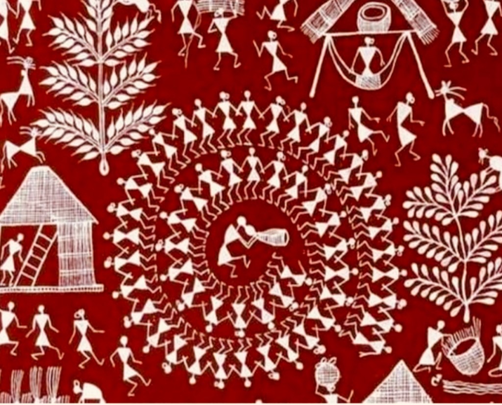 - Warli paintings- Warli paintings got a GI tag in 2014. The Warlis who are Warli painting makers carry on a tradition stretching back to 2500 or 3000 BCE. Warli paintings are a tribal art mainly done by the women folk. The most important aspect of the painting is that it does not depict mythological characters or images of deities but depicts social life. Pictures of human beings and animals, along with scenes from daily life are created in a loose rhythmic pattern. These paintings are drawn for rhythmic patterns. For special occasions such as festivals, harvest, marriage etc.