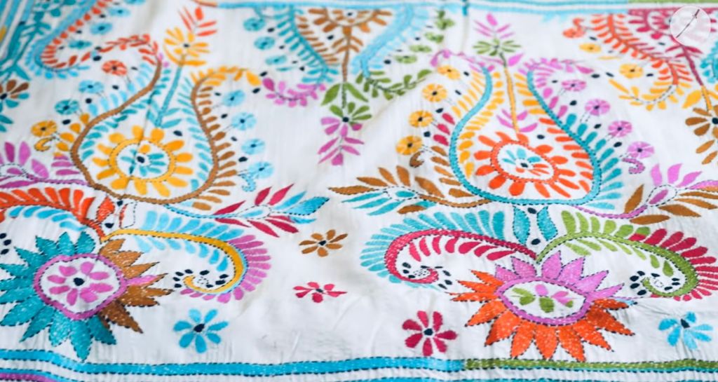 In Bengal, Kantha work stands out, utilizing thread for embroidery, commonly known as Kantha embroidery. Cotton and occasionally silk threads are used for crafting sarees, kurtis, bed sheets, cushions, table runners, kurtas, and other cotton-based items. Cotton sarees like Jamdani and Baluchari, as well as Bengali silk sarees, are popular choices for festivals and marriages. Kantha work, done entirely by hand embroidery, commands a high demand in the market. Skilled workers showcase their culture and traditions through this artistic form.